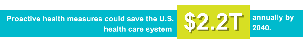 November 07, 2025Proactive health care supports healthier employees and creates a stronger, more resilient workplace. Deloitte estimates that proactive health measures could save the U.S. health care system up to $2.2 trillion annually by 2040, equating to more than $7,000 per person. Yet today, much of our nation’s health care spending still focuses on treating illness instead of preventing it.